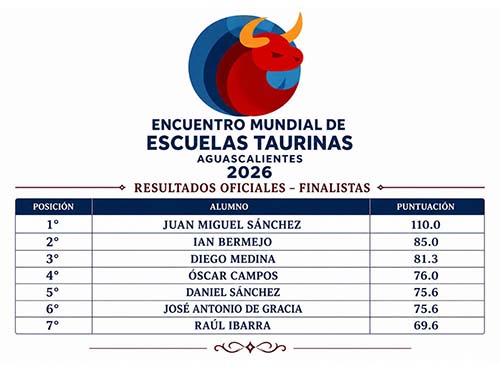 La triunfal y emocionante actuación de los 12 alumnos representantes del toreo mexicano, español y portugués, en el Encuentro Mundial de Escuelas Taurinas 2026, dio por resultado que, en el festejo del 30 de abril, a las 17:00 horas en la Plaza San Marcos, sean siete los toreros que disputen el título de triunfador en la Gran Final, también con entrada gratuita.